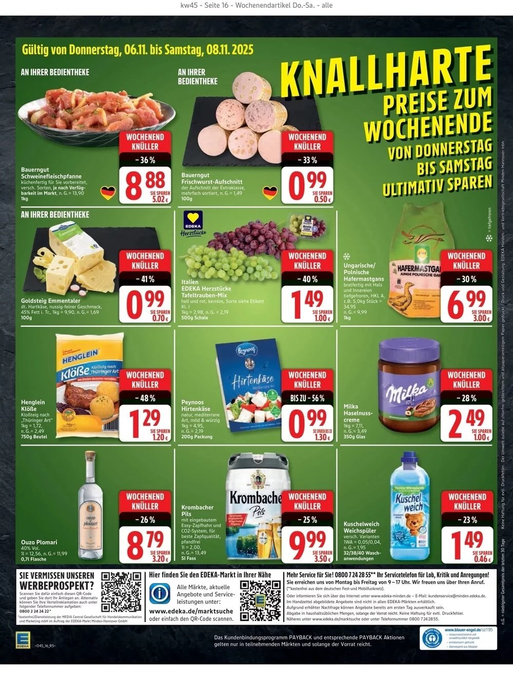 Diese Woche stehen Ihnen viele Sonderangebote offen, sodass Sie beim günstig einkaufen ordentlich sparen können. Schauen Sie sich auch die Edeka Angebote der Woche an, um kein Schnäppchen zu verpassen. Auch die Möglichkeit, Payback Punkte zu sammeln, spricht für Edeka. Nutzen Sie Ihre Punkte optimal, um zukünftig noch mehr von den erstklassigen Angeboten zu profitieren.